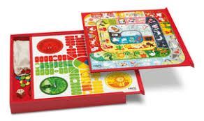 Caja de madera contenedora de todas las fichas y dados para jugar. La tapa lleva los dos juegos de mesa más tradicionales, el parchís por una cara y la oca por la otra. Esta realizado todo en madera y las ilustraciones son muy infantiles y divertidas